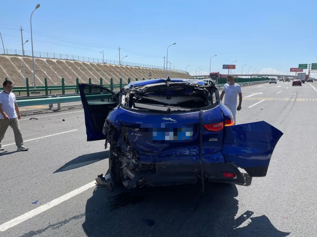 民警立即下车查看,原来是一辆半挂牵引货车,在撞上一辆小客车后又撞到中央护栏,车辆180度横停在高速公路上,将三条车道全部堵死,现场一片狼藉,防冻液、机油、车辆碎片散落一地,所有车辆只能从旁边的二环路出口匝道绕行,小客车上乘坐的四人全部吓得瑟瑟发抖。
