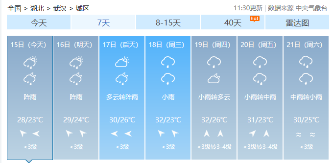 明天武汉中心城区的最高温就将升至30℃周三周四高温甚至回到32℃