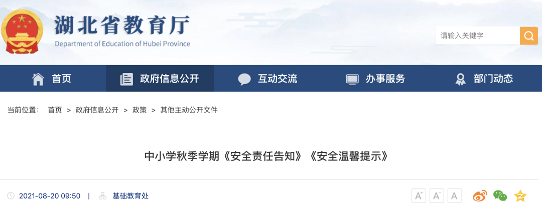 8月20日,湖北省教育厅发布高等学校、中小学、幼儿园秋季开学安全温馨提示。具体有哪些内容?我们一起来看看吧!