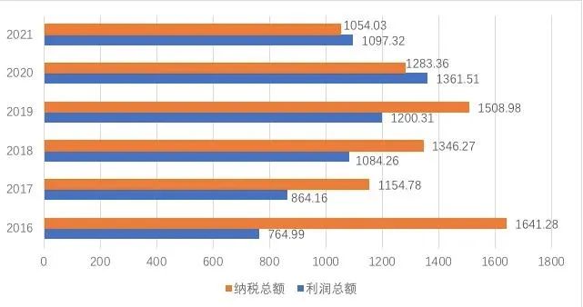 2016-2021武汉企业100强利润总额和纳税总额情况