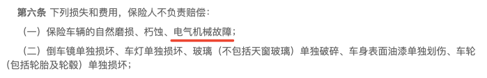 因为目前的条款全是按照燃油车标准制定的,赫然写的对「电气」免责……