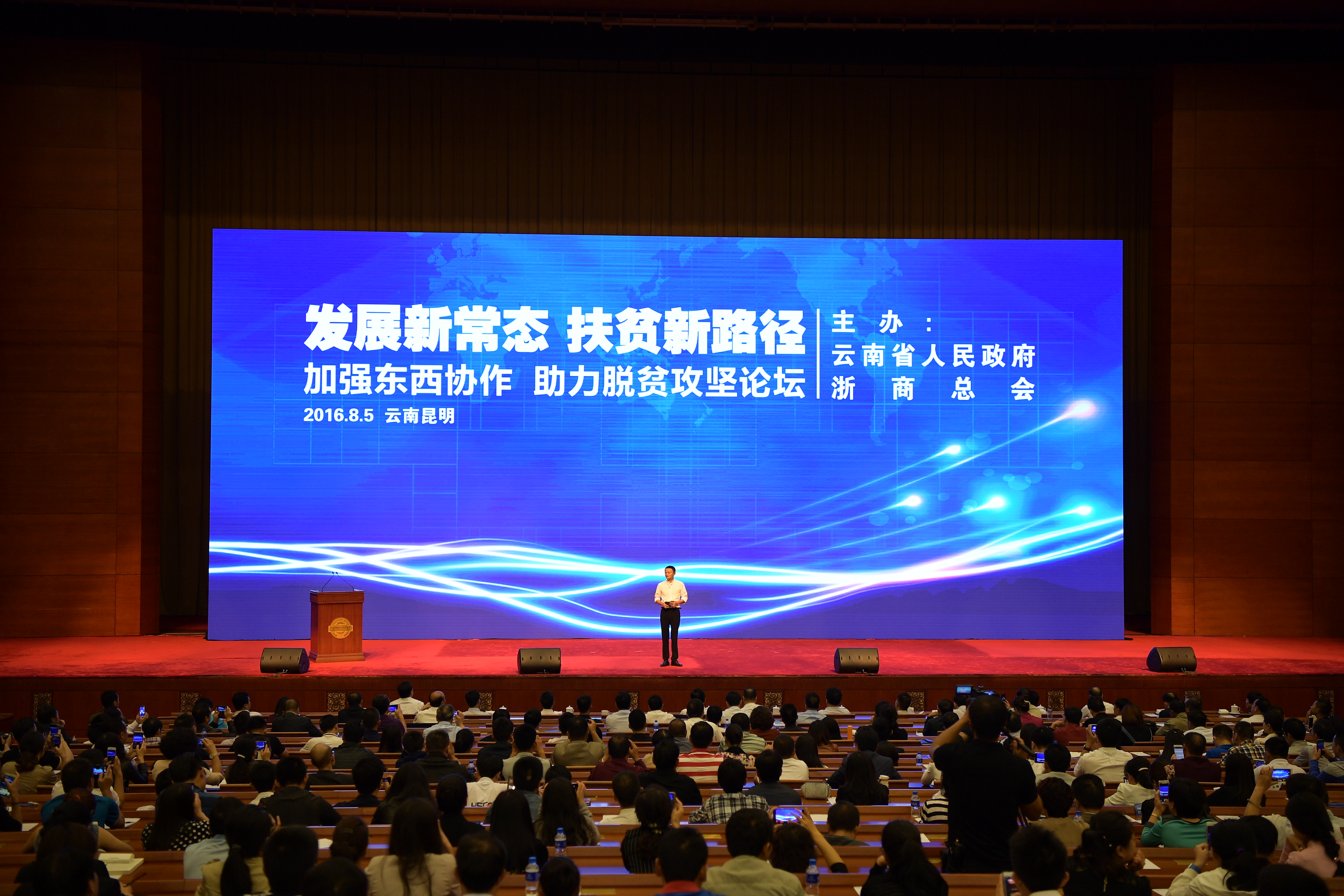 最后,我想把脱贫不是一个口号,我也相信,中国7000万的贫困,7000万就是7000万的机会,如何找出不同的办法来解决这样的问题。很荣幸能够参与这次巨大的变革,这次巨大的号召能够投身到第三次世界大战,解决贫困之战,所以来到云南的浙商群体,我为浙商一直感到骄傲,我相信40万浙商在云南,在各自的岗位上先把自己的企业做好,把自己的员工照顾好,把自己的家人照顾好,把自己的供应商渠道照顾好,这就是最大的慈善和扶贫攻坚。因为你做强了,社会才会强,你做强了你的利润、收益才有可能为未来,我们共同努力把471万还在云南贫困线下的老百姓们脱贫。