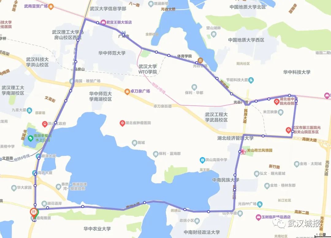 覆盖5条主干道:南湖大道、民族大道、雄楚大道、关山大道、珞喻路。