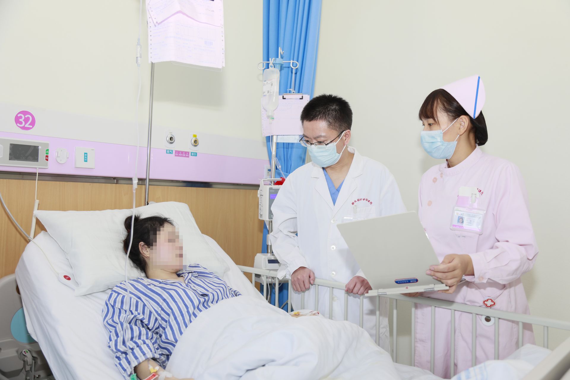 阑尾炎手术很常规,但范女士已经孕中晚期,增大子宫紧挨着阑尾,手术需要非常谨慎。在手术麻醉科的配合下,光谷院区外科副主任医师肖田熟练操作,尽量避免对子宫牵拉干扰,顺利完成了穿孔阑尾的切除并清除腹腔内感染。