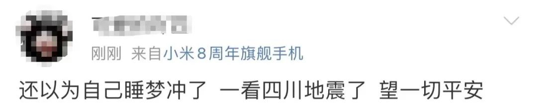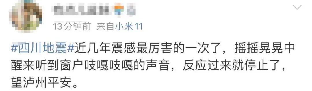 网友@潇姐姐说:射洪市震撼相当强烈。摇醒了到现在不敢睡。