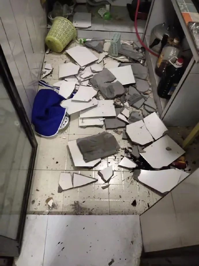 在网上,当地多位网友拍摄的视频显示,街道上有门面的招牌被震垮,房屋的吊顶脱落。