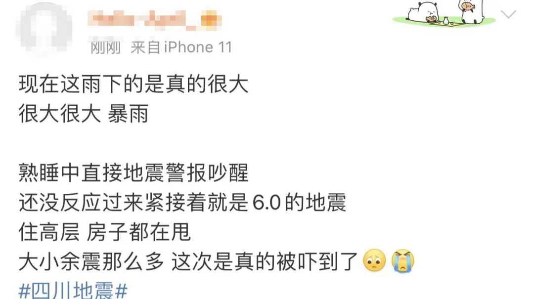 网友“等等悠米吧”说,坐标成都顶楼,现在腿都是软的。网友“听羌”说,自己凌晨4点30分被手机预警吓醒,然后第一次不知道咋关闭预警,人都是懵的,手机就搁哪儿一边闪光灯一边响。