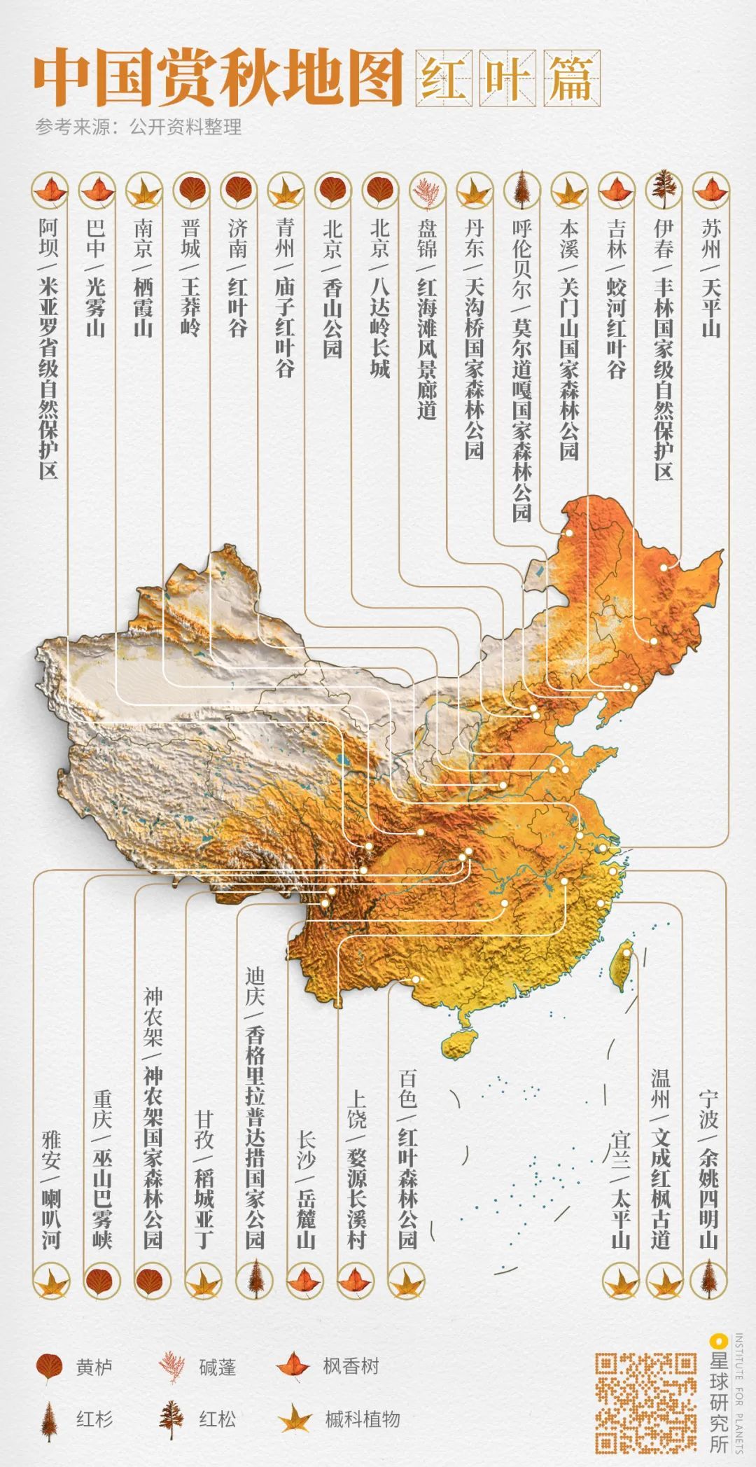 (中国赏秋地图⎜渲染篇,制图@郑艺&郑伯容/星球研究所)