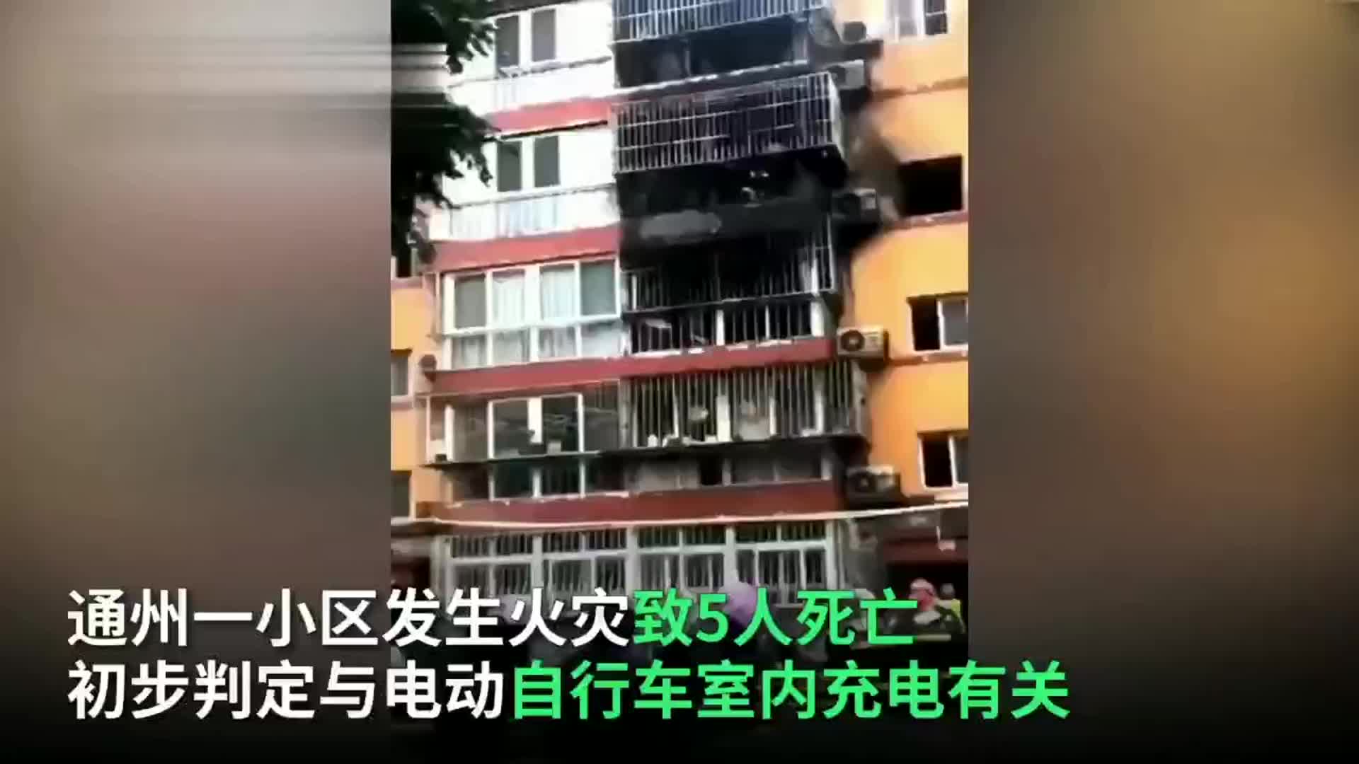 9月20日凌晨,北京市通州区一小区发生火灾,造成5人死亡。据了解,起火建筑共5层,高18米,其中4层、5层为复式结构。根据相关部门初步判断,火灾原因为3层租户将电动自行车锂电池带回家中充电,电池发生爆炸起火。3层起火后迅速蔓延至4层阳台,并蹿至客厅及5层卧室。目前,案件在进一步工作中。