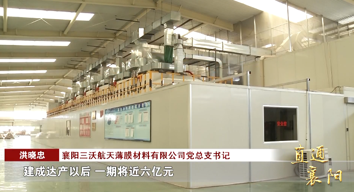 襄阳三沃航天薄膜材料有限公司党总支书记 洪晓忠:“建成达产以后 一期将近六亿元,未来二期上了以后,公司新材料这一块能有望突破十个亿,成为规模化企业。”