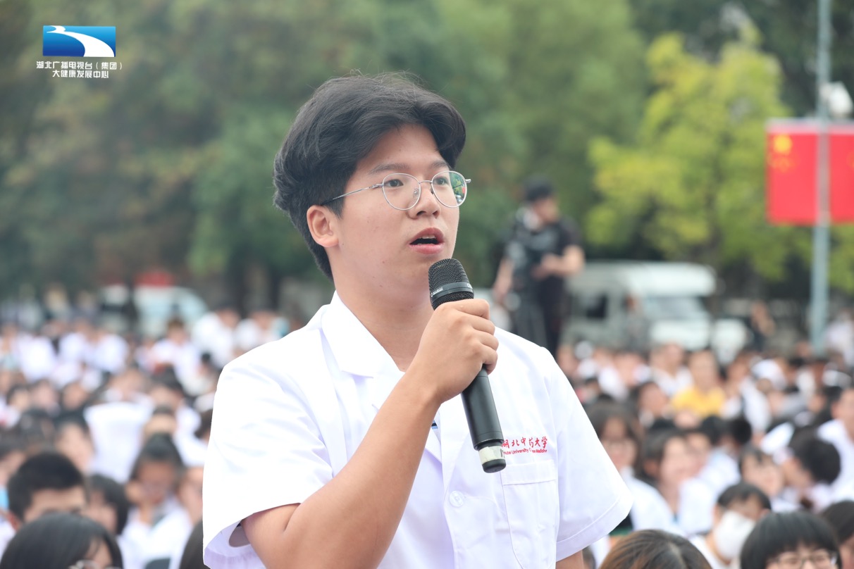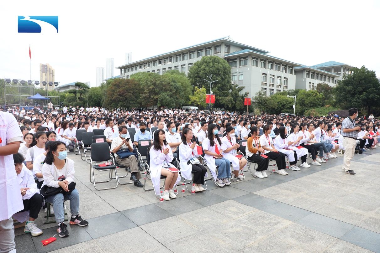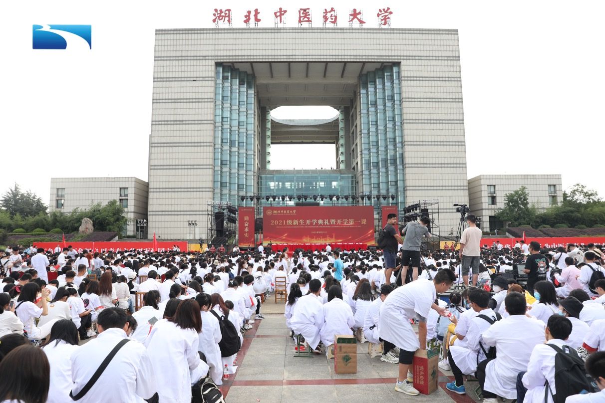 金风飒飒,秋水盈盈。上午八时,一场数千师生参与的2021级新生开学典礼暨开学第一课在湖北中医药大学图书馆广场上拉开帷幕。