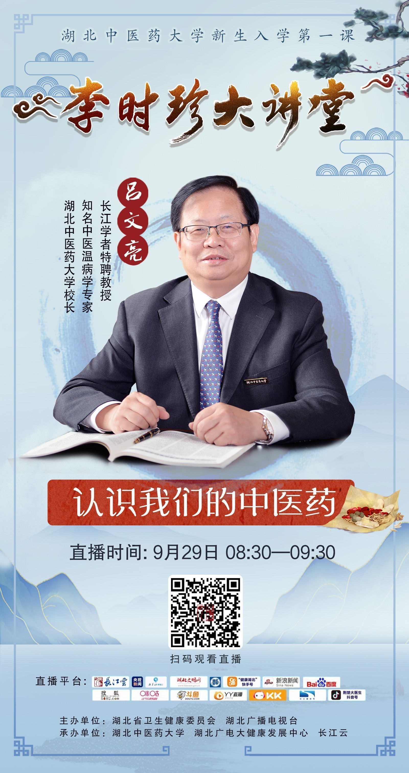 在这样一场意义非凡的大集会上,湖北省卫生健康委与湖北广播电视台联合主办的大型中医药系列融媒直播节目《李时珍大讲堂》,邀请长江学者特聘教授、知名中医温病学专家、湖北中医药大学校长吕文亮坐镇“开学第一课”主讲台,为线下数千名新生和线上广大网友讲述中医药历史渊源和文化内涵。