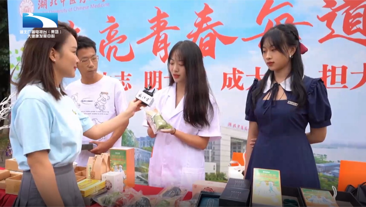 校园一角,三位青春靓丽的学生自信大方地介绍着他们自制的中医药文创产品,每个单品兼具养生妙用与时尚元素,充分展示出零零后中医药人的坚守与创新。