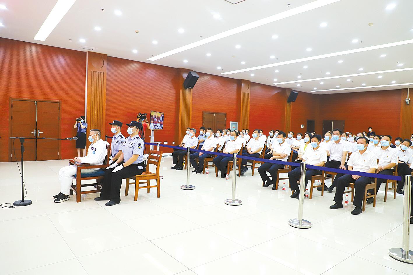 9月8日,顾兴胜在武穴市法院受审,麻城、蕲春140余名党政干部现场旁听。 (通讯员 商中胜 摄)