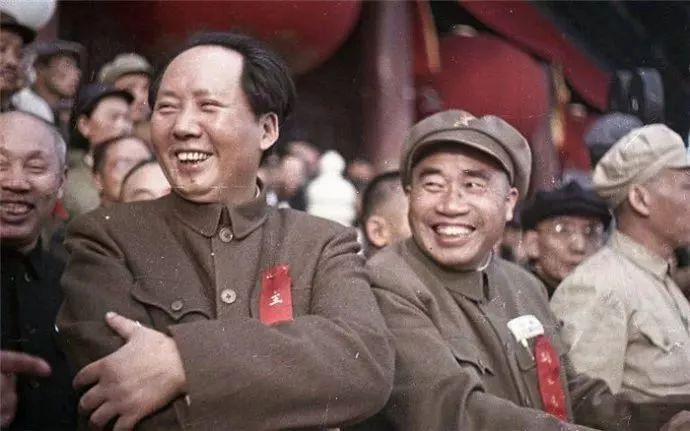 △1949年开国大典:毛泽东主席和朱德总司令开心的笑容