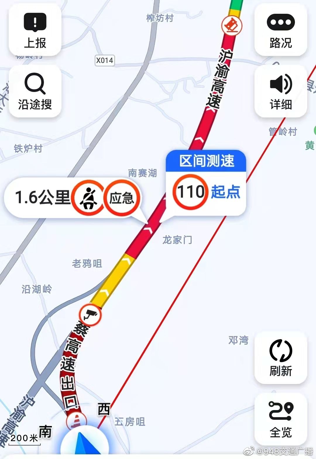 因事故,现场行车缓慢的有:G50沪渝高速往荆州 、宜昌方向仙桃至排湖段。