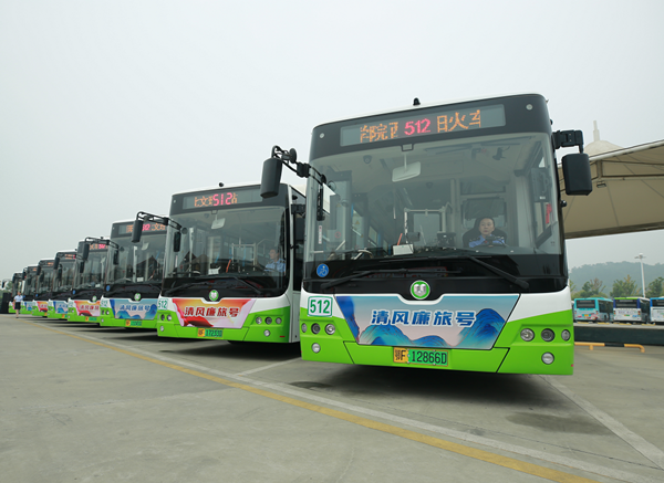 襄阳市纪委监委联合该市公交集团打造清廉公交,营造“清廉车厢氛围”、设置“清廉故事站台”、启用“清廉语音报站”,以百姓喜闻乐见的形式推进清廉企业建设工作,使城市公交成为拉近政府与群众距离的“连心车”“清风号”。图为该市打造的512路“清风廉旅号”公交线路。