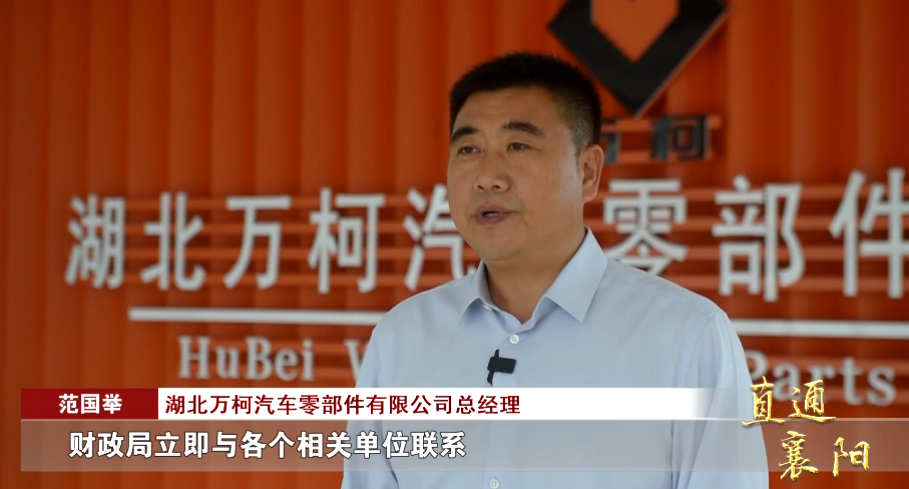 湖北万柯汽车零部件有限公司总经理 范国举:“今年3月,我们应客户的要求,新上了一条新能源车桥齿轮项目,这种项目从征地、基建到投产,通常没有两年是不可能完成的。抢占市场刻不容缓,我们向包保单位老河口市财政局发出请求,财政局立即与各个相关单位联系。”