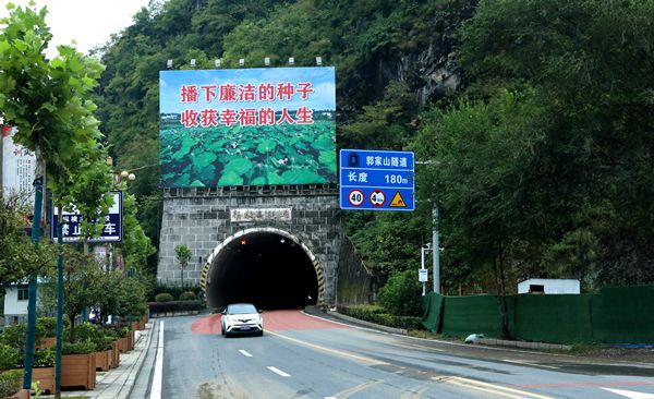 竹山县郭家山隧道悬挂清廉标语,营造浓厚清廉氛围