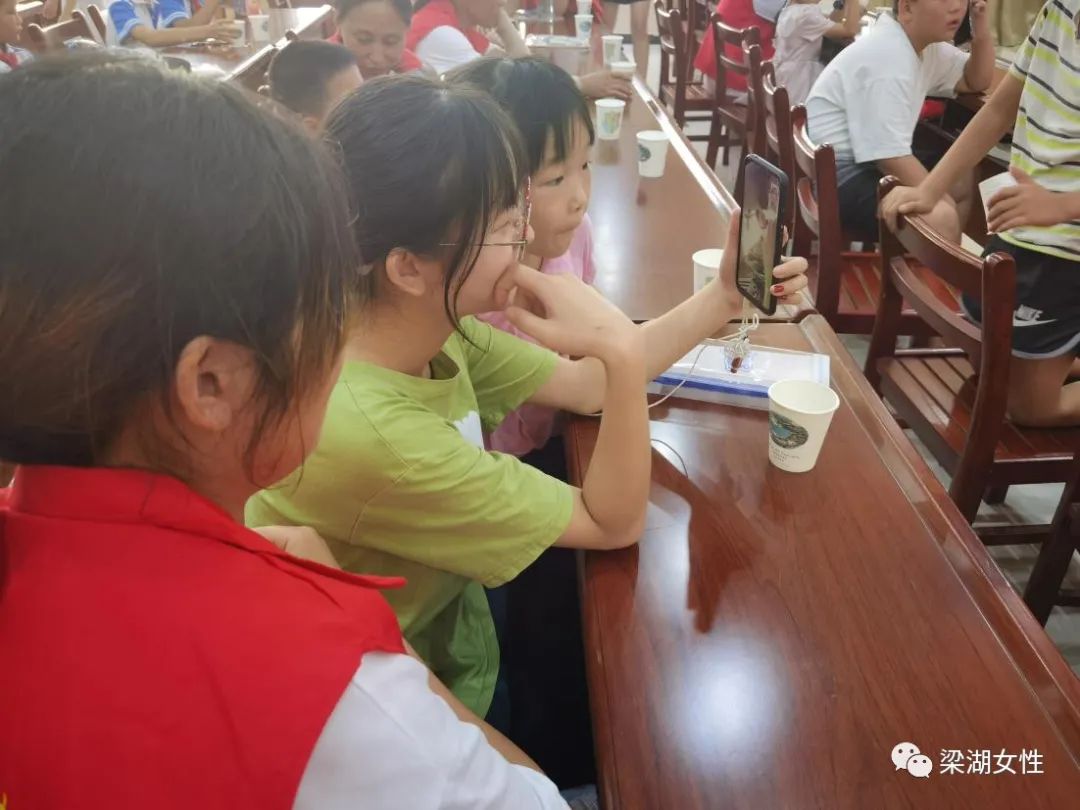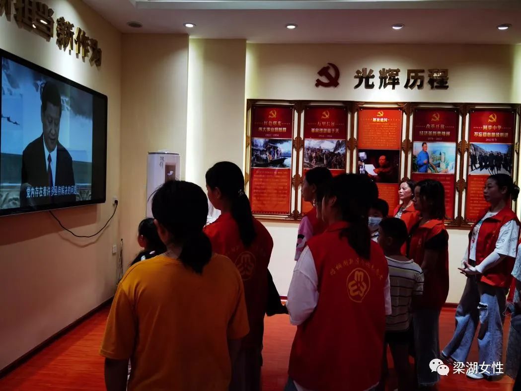 一大早,我们的“爱心妈妈”们带领着新区留守儿童来到了梧桐湖社区大厅,在巾帼志愿者的带领下,一起参观了梧桐湖社区市民化展厅和廉政教育基地,“妈妈们”和孩子们手牵着手,一起听党史故事和新区最初成立到现在建设演变的过程。