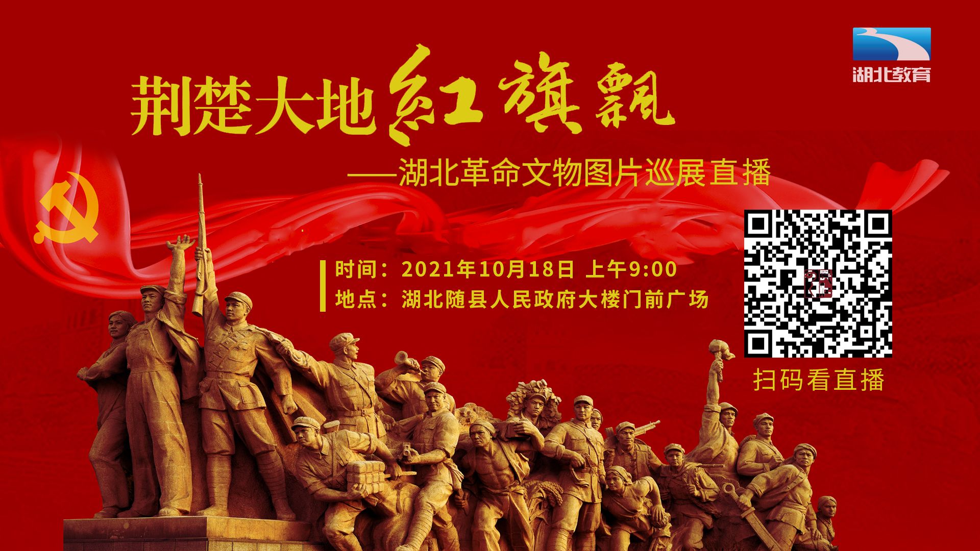 明日, 湖北长江广电教育传媒(湖北电视教育频道)将带领湖北电视台主持人和巡展金牌讲解员,通过视频直播,邀您一同云看展,追随革命文物,回忆峥嵘岁月!