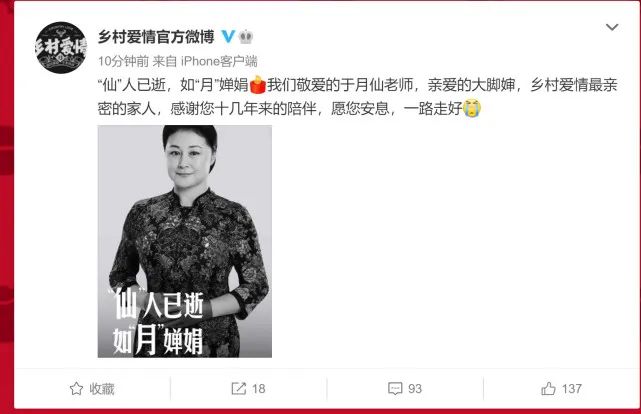 8月9日,“谢大脚”扮演者于月仙因车祸不幸身亡。
