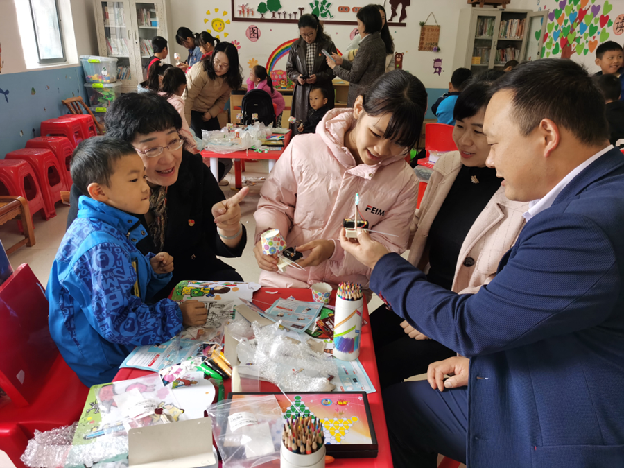10月16日至17日,为做实“我为群众办实事”“人人都是联县驻村工队员”实践活动,湖北省地质局女工委组织8位“爱心妈妈”代表跨越千里从武汉、黄石等地赶赴何家湾村,关爱这里的留守儿童。10月16日下午,秋雨淅淅沥沥下着,“爱心妈妈”们走进8户留守儿童家庭。“数学考得怎么样?”“学校离家里有多远?”“爸爸妈妈多久没有回来了?”“想要什么样的玩具?”每走进一户留守儿童家庭,“妈妈”们都详细了解孩子们的家庭基本情况、学习成绩、精神面貌、心理状态等,双方互留联系方式,结对“母子”关系,并为孩子们送去牛奶、水果等慰问品。10月17日,在童伴之家,“爱心妈妈”们把村里22名留守儿童当作自己的孩子,和他们一起粘、剪、拼、装,制作七色小彩灯。看到自己亲手做的小彩灯制作完成并点亮,孩子们开心的笑了。户外,不少“妈妈”第一次当起了运动员,和孩子们一起玩游戏、跳绳,在欢声笑语中增进了彼此了解。
