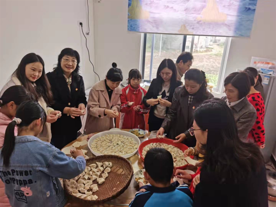 为了让小朋友们吃一顿暖心的午饭,“爱心妈妈”和小朋友一起包饺子。8岁的喻文浩一顿操作很麻溜,12岁的魏金凤动作很熟练,一看就知道没少给大人帮忙。“爱心妈妈”为他们竖起大拇指,予以鼓励。三鲜馅、韭菜馅,一盘盘热腾腾的饺子香气扑鼻,孩子们狼吞虎咽的吃着,“爱心妈妈”们满足的笑了。