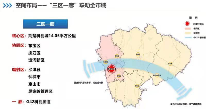 10月26日,荆门市召开荆楚科创城发展总体战略规划暨工作推进会,发布科创城发展规划,标志着科创城发展战略全面启动。规划范围以14.05平方公里的荆楚科创城为核心区,以东宝区、掇刀区、漳河新区等中心城区为协同区,以沙洋县、钟祥市、京山市、屈家岭管理区为辐射区。