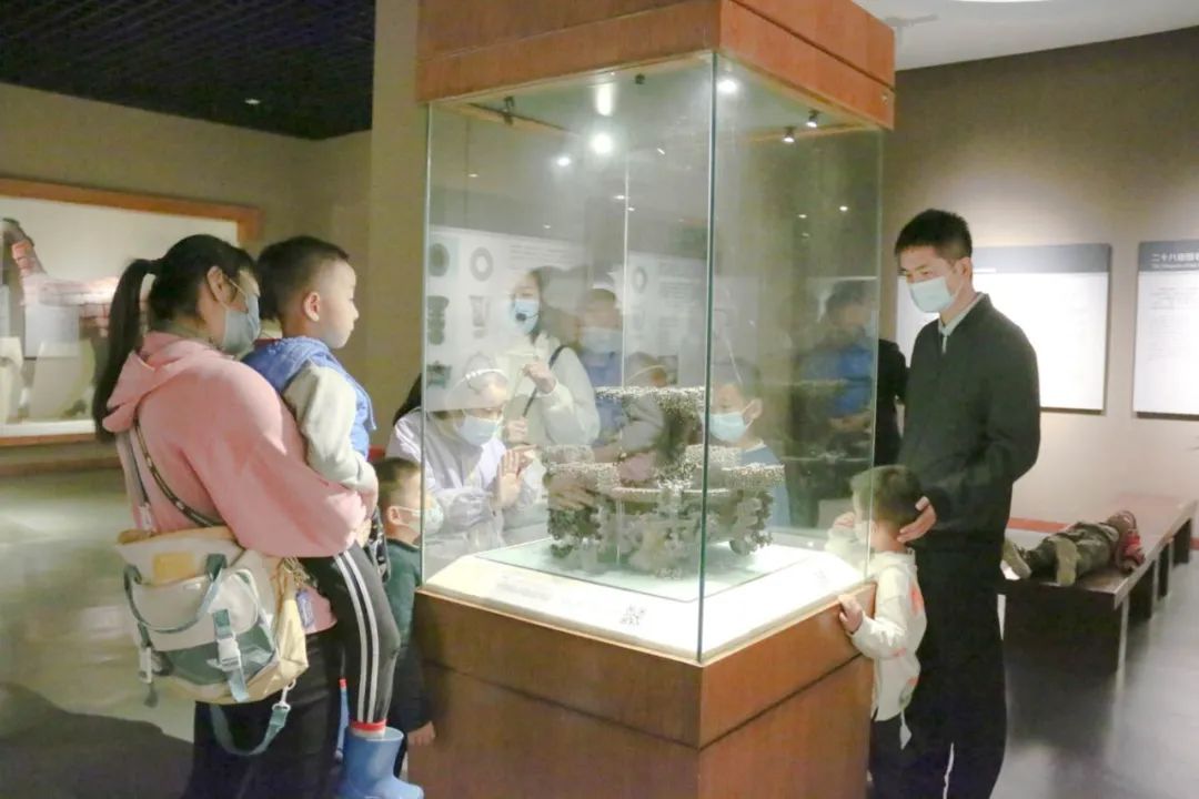 第二站,在随州市博物馆,孩子们怀揣着好奇心,在“爱心妈妈”的陪伴下,仔细聆听着讲解员的介绍,有组织、有纪律地参观了博物馆内存有的各种珍贵的国家级文物,跟随历史长河的脚步,体会灿烂的历史文化。随州市博物馆堪称一座内涵丰富的文物宝库,尤其是青铜器数量众多、种类齐全、内涵丰富、时代跨度大,而且铸造精美,在全国屈指可数,被誉为“青铜器王国”。