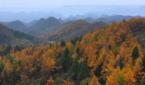 深秋时节,湖北恩施的抛儿山迎来了一年中最美的景色。这里独特的喀斯特地貌造就了奇妙的地理景观,可以同时看绿、黄、红多种色彩。沿着错落有致的山脉,驾车行驶在山间的公路上,犹如进入美丽的童话世界。