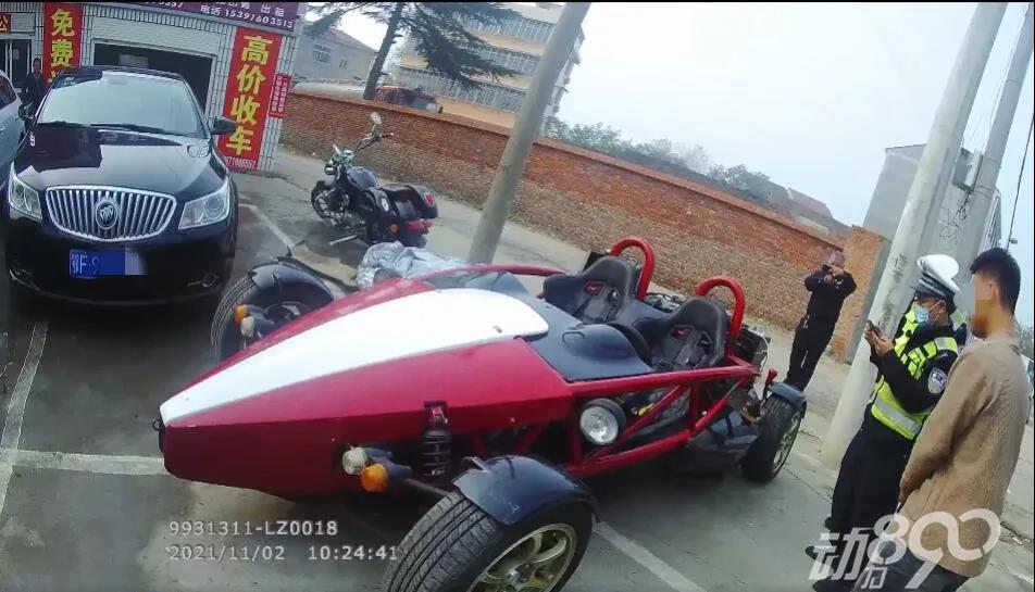 11月1日,南漳交警部门在抖音上发现一名男子驾驶一辆方程式赛车载着乘客在道路上行驶的视频。经查,发此视频的抖音名字为“某修理厂”,而车辆行驶道路上有“九武加油站”标志,民警立即按照此特征上街查找,在甘沟路发现了该修理厂和加油站。