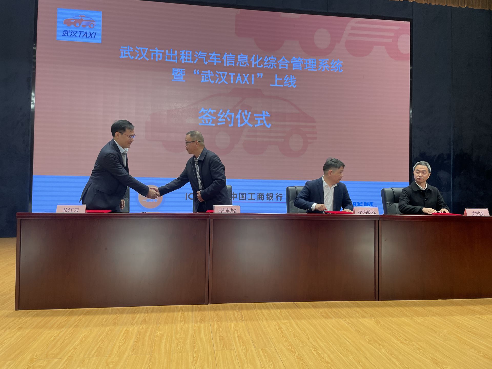 在发布会上,湖北长江云新媒体集团董事长、总经理朱昊与武汉市出租汽车暨汽车租赁协会签署合作协议,共同推进“武汉TAXI”出行服务。
