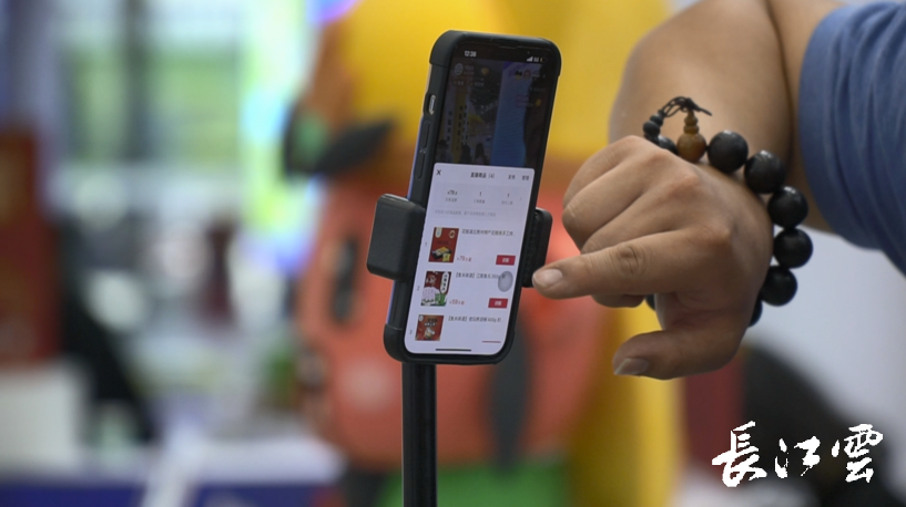 瞅瞅这位小哥,边卖货还边直播呢,真是线上线下两不耽误。