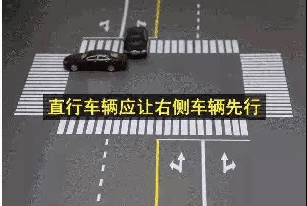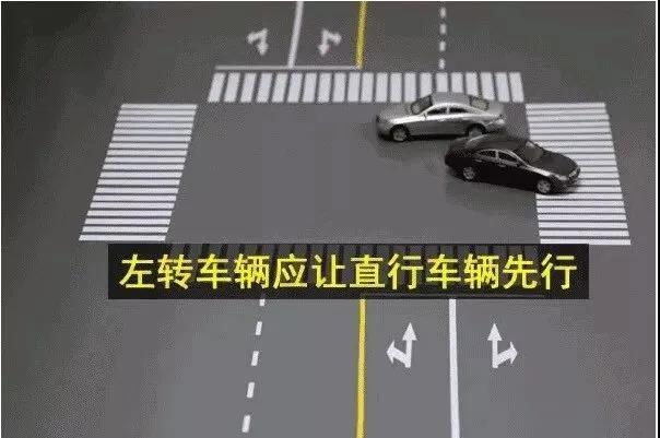 (四) 相对方向行驶的右转弯的机动车让左转弯的车辆先行。