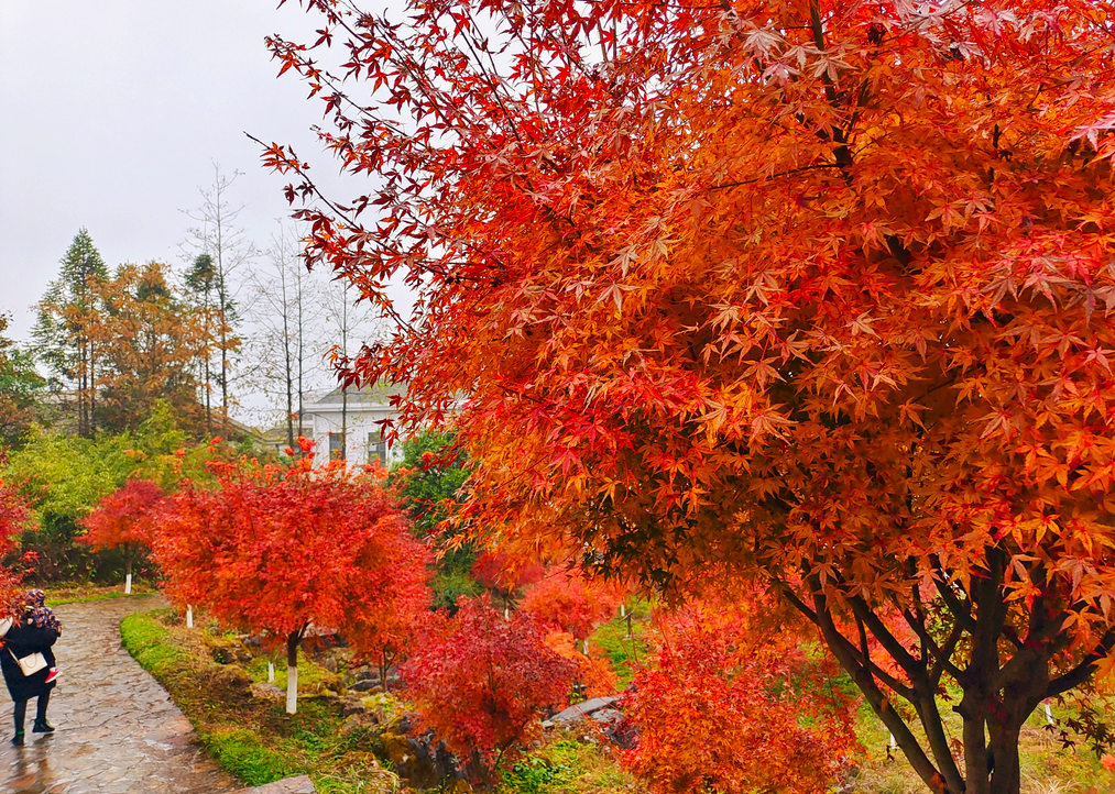 满山的红叶映入眼帘,红叶婆娑,让人眼花缭乱,目不暇接,吸引了不少游客驻足观赏,尽享初冬惬意生活。