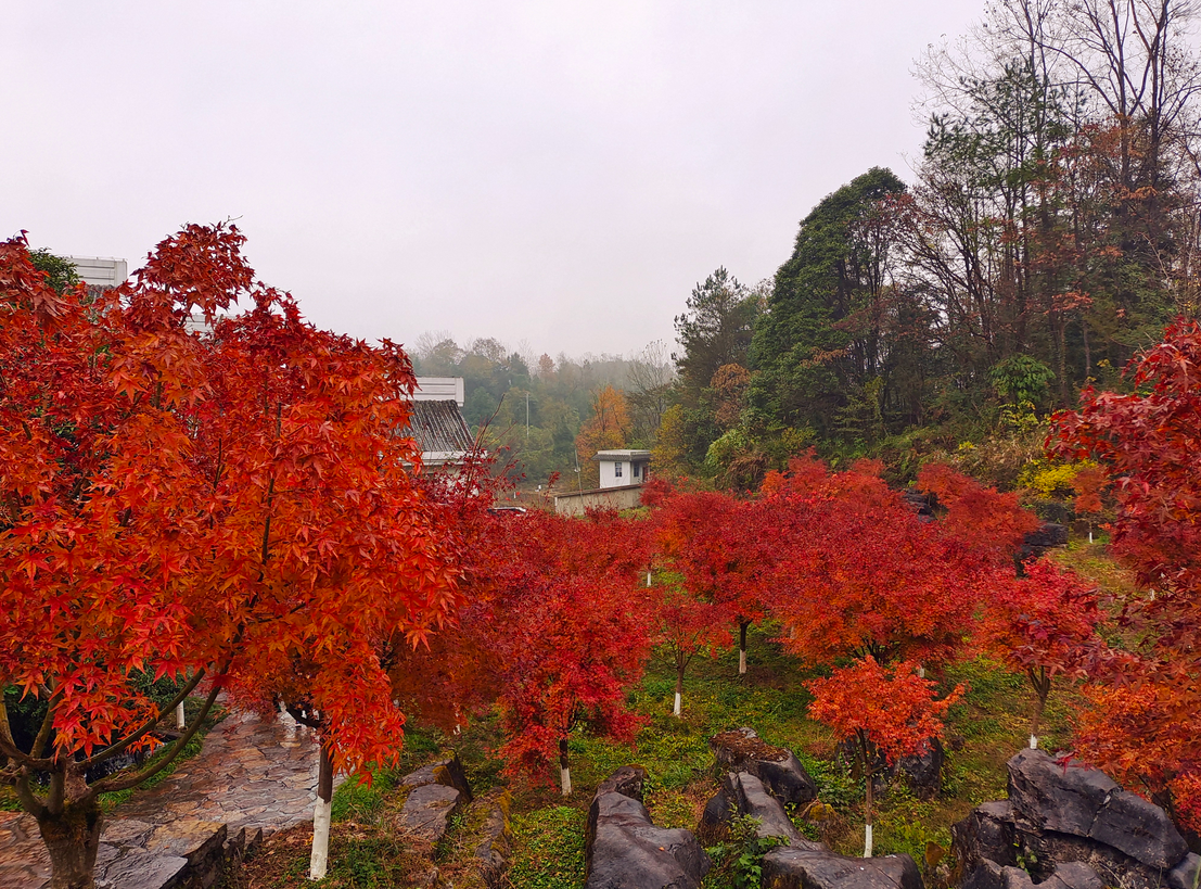 连日来,湖北省宣恩县椒园镇矅天眼景区数百株红叶陆续上线,火红撩人。