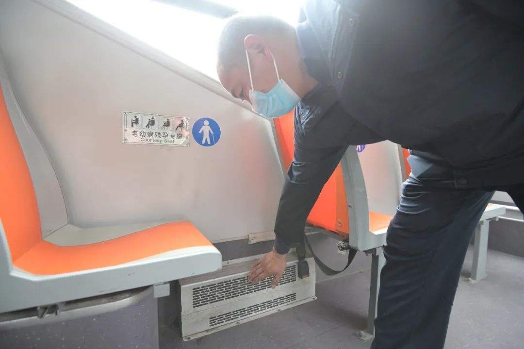 地铁1号线司机胡波发车前检测列车电暖供暖正常。