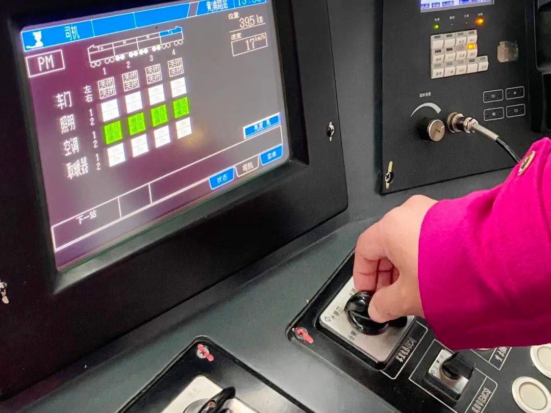 地铁1号线司机胡波发车前调试列车电暖供暖系统。