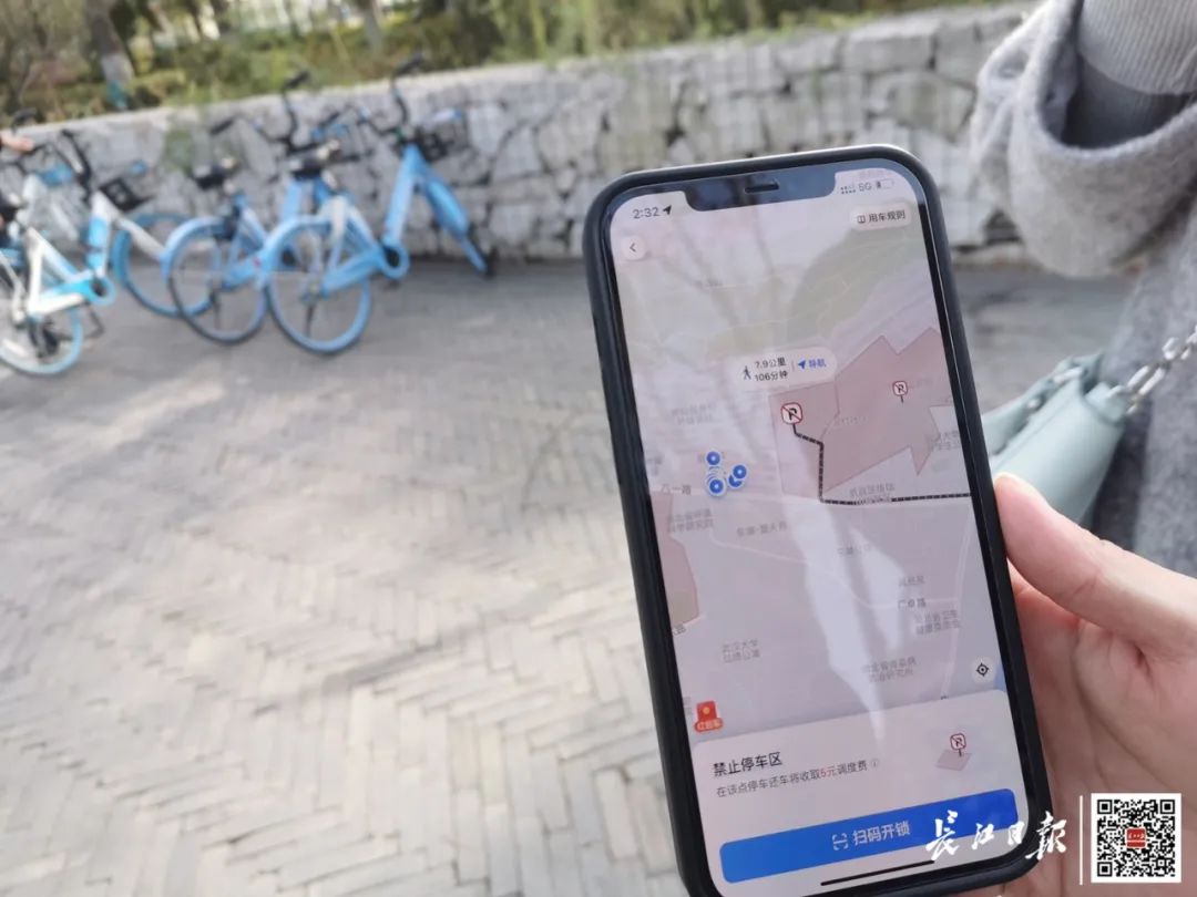 王涵介绍,目前,东湖绿道一期28.7公里启用了10个“电子围栏”。在东湖绿道周边东湖南路沿线、梨园广场、樱花园等地也增设了共享单车定点停放区域。