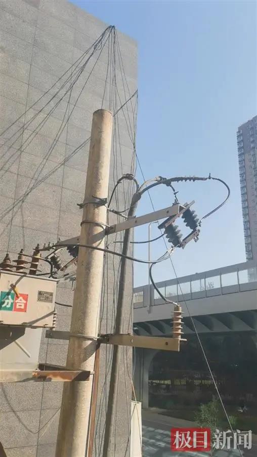 24日,记者探访了事发地,发生事故的电线杆位于建工路陕送东苑小区内,高约5米,紧挨着小区外墙,电线杆东西两侧紧挨着分别是陕送东苑小区、恒大嘉里公馆C座的裙楼,裙楼高度稍高于电线杆。