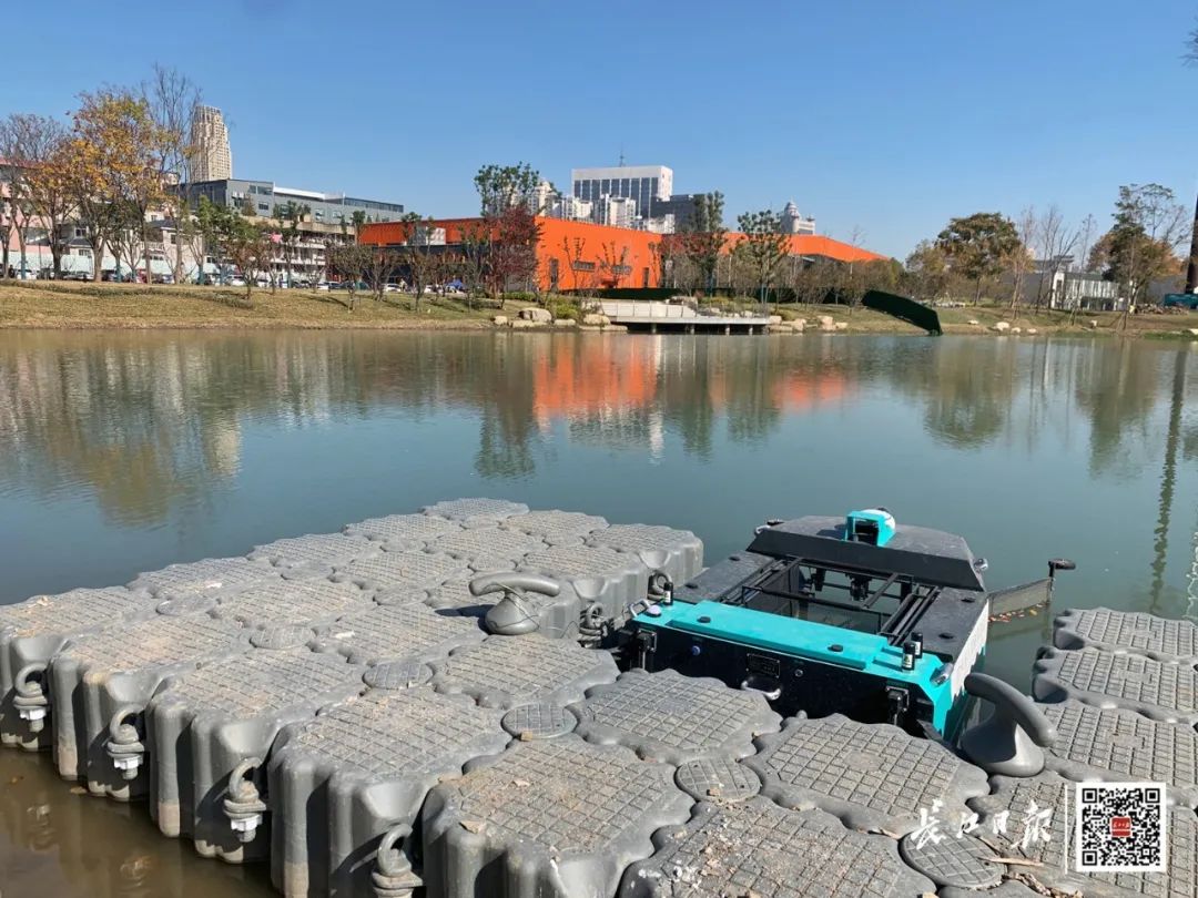 “这是我们最新上岗的湖面清道夫——智慧无人清洁船。”连建辉告诉记者,这艘智慧无人清洁船是公园“5G智慧”的一个体现。通过船身上的传感装置,无人船能自动扫描、收集水面漂浮的杂物和垃圾,当垃圾装满或电力不足时,它还能自动返航停靠码头。