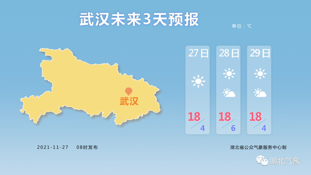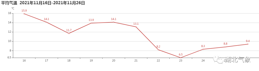监测显示,武汉国家站从11月22日起,直到11月26日,日均气温都保持在10℃以下,已经持续5天了。