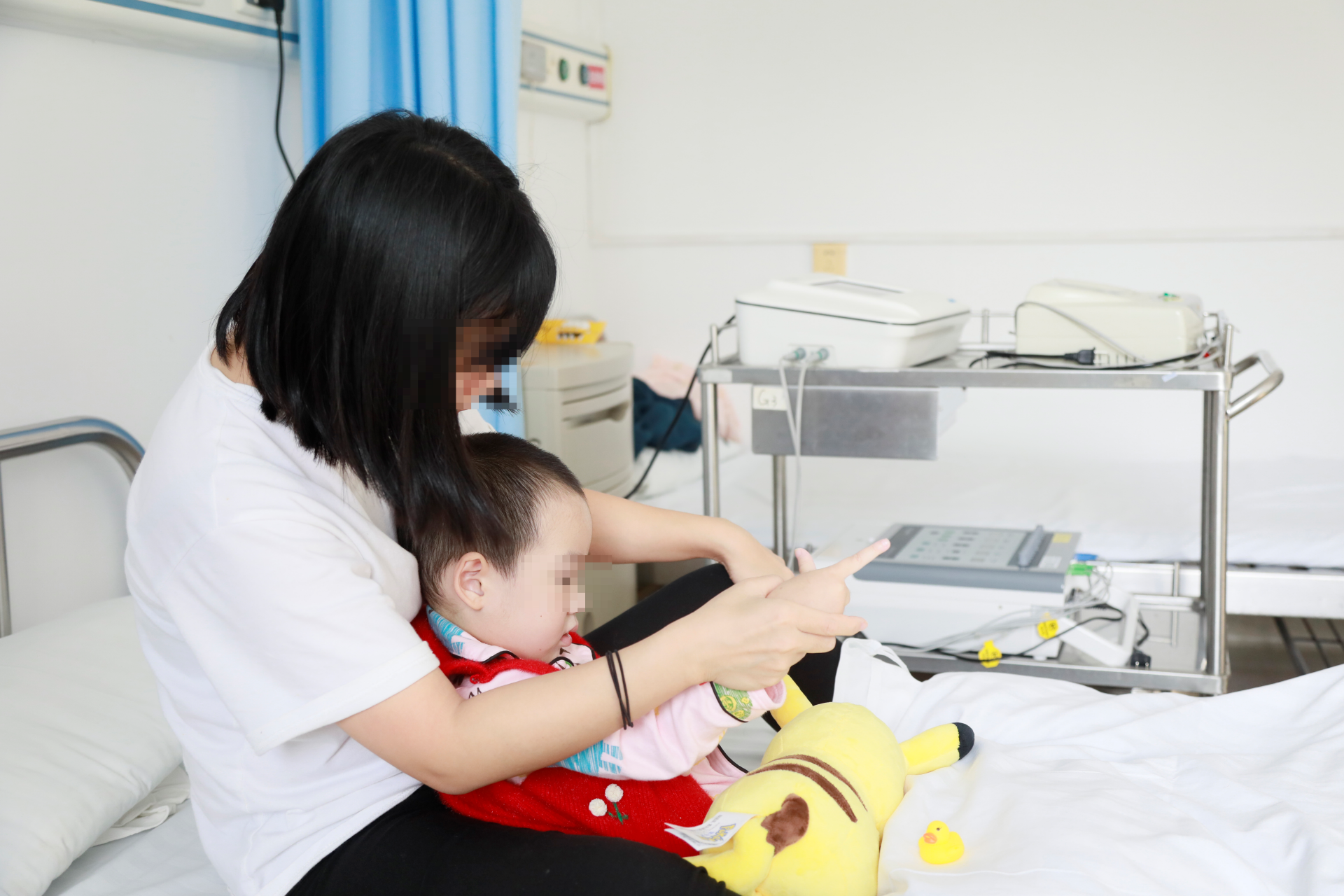 10月21日,根据病情需要,心心转入儿童神经内科进行下一步治疗。“当时,患儿的情况非常危重,”科主任陈利娟介绍,孩子处于浅昏迷状态,对疼痛刺激有反应,但瞳孔对光反射迟钝,不追光,不追声,不发声,持续头及眼睛向左偏,伴右侧肢体不自主扭转,左上肢烧伤伤口未愈合。”段女士和丈夫看到女儿时心痛又焦急,但坚定地跟医护说“不放弃,一定要把孩子救过来!”