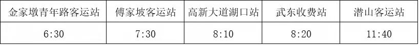 武汉→潜山:金家墩青年路客运站→傅家坡客运站→高新大道湖口站→武东收费站→潜山