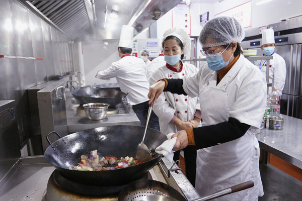 图为襄阳四中校长在美食节上为周末留校学生烹制晚餐