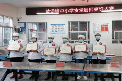 图为保康县黄堡镇在中心学校食堂举办全镇中小学食堂厨师烹饪大赛