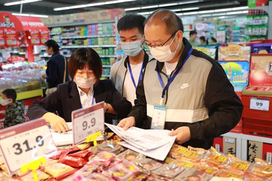 丹江口市纪委监委紧盯重要时间节点,整合监督力量,在某超市检查公款购买赠送节礼情况。