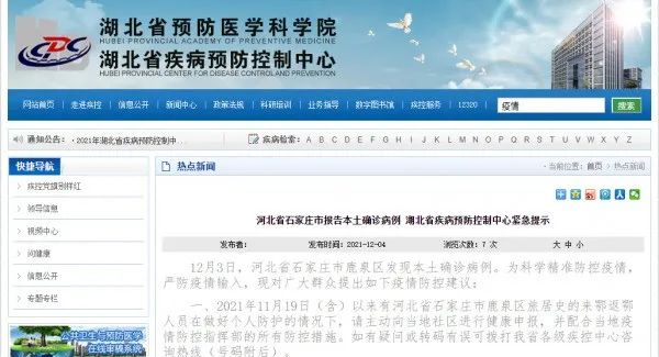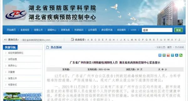 12月4日上午湖北省疾病预防控制中心发布2条紧急提示