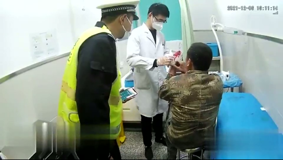 到达医院后,民警赶紧下车帮助伤者挂号就医,为抢救赢得了宝贵时间。看着医生为伤者进行诊治后,民警才放心离开医院,返回工作岗位。
